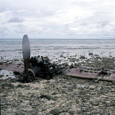 Remains of Mitsubishi A6M3 Model 22A Zero on Ollat Island, Maloelap Atoll, August 1984